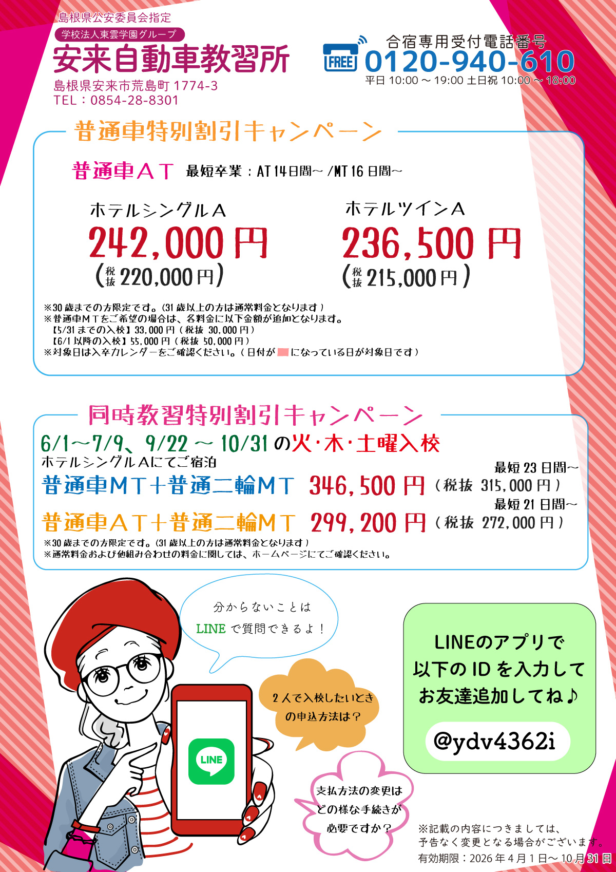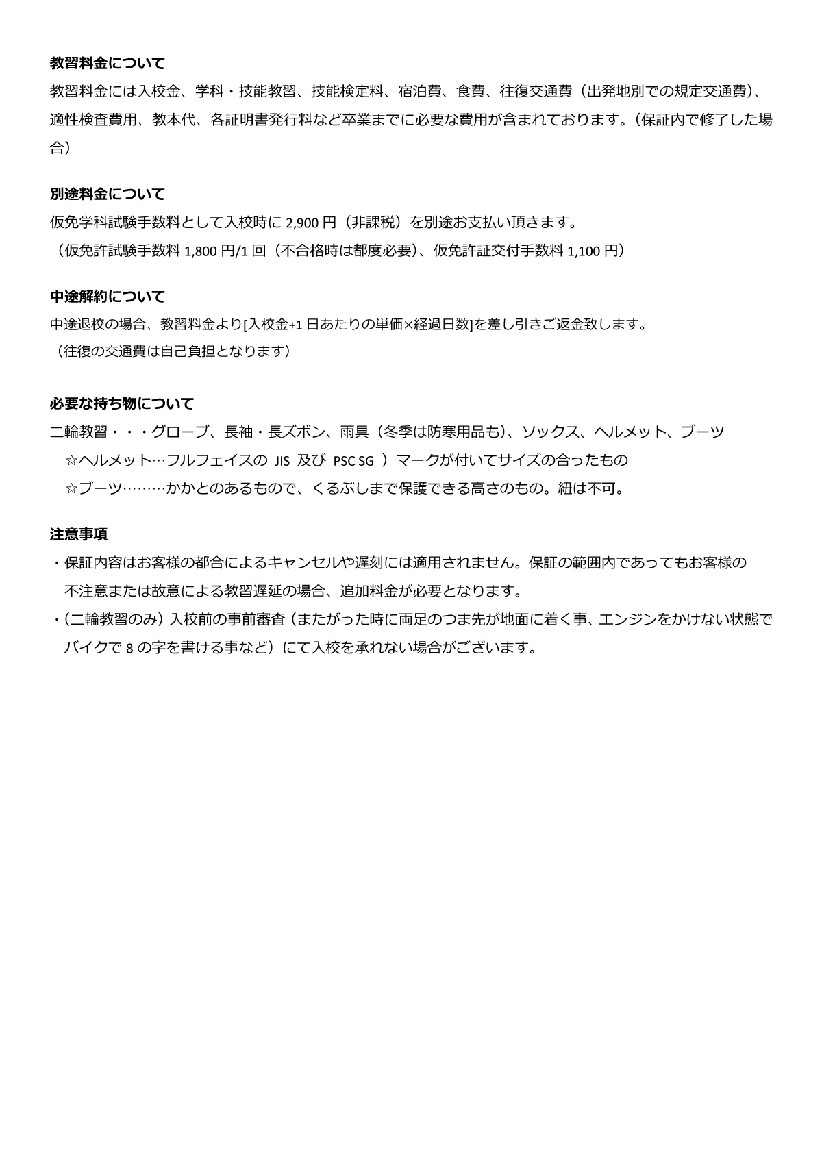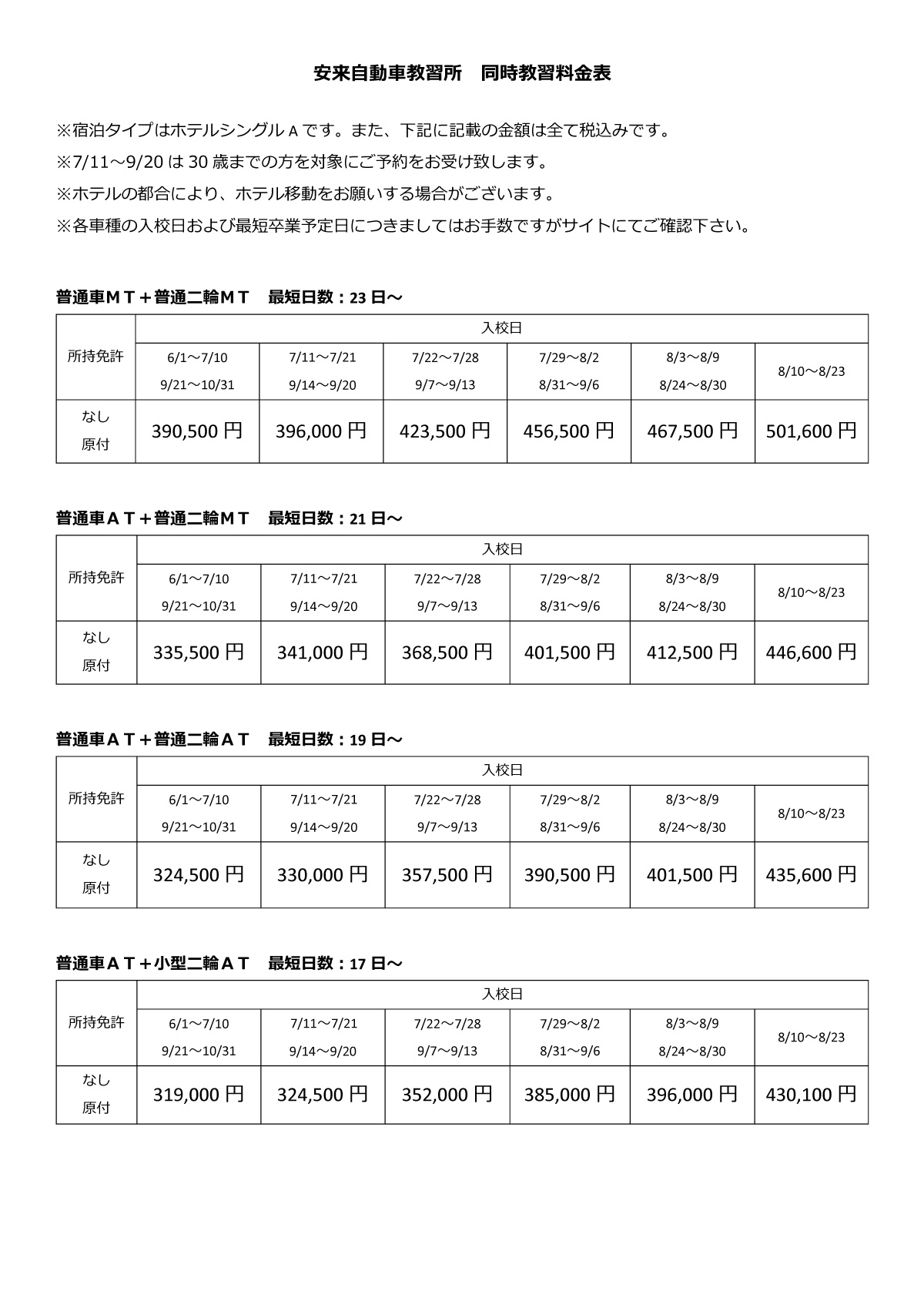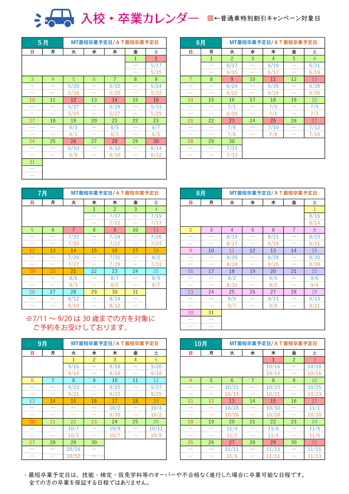 取得したい車種によって入校日と最短卒業予定日が決められています。