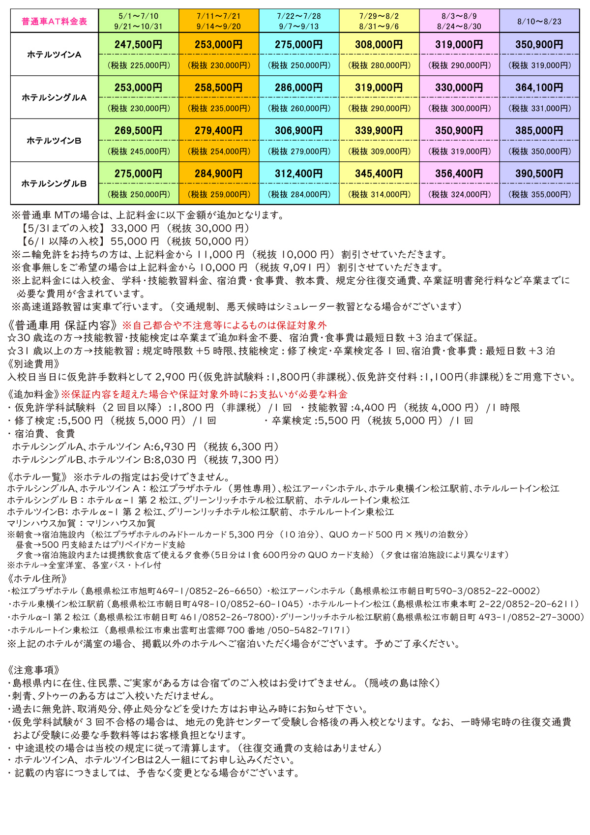 合宿中は一時帰宅ができないためスケジュールを確認し余裕をもったお日にちでお申し込みください。