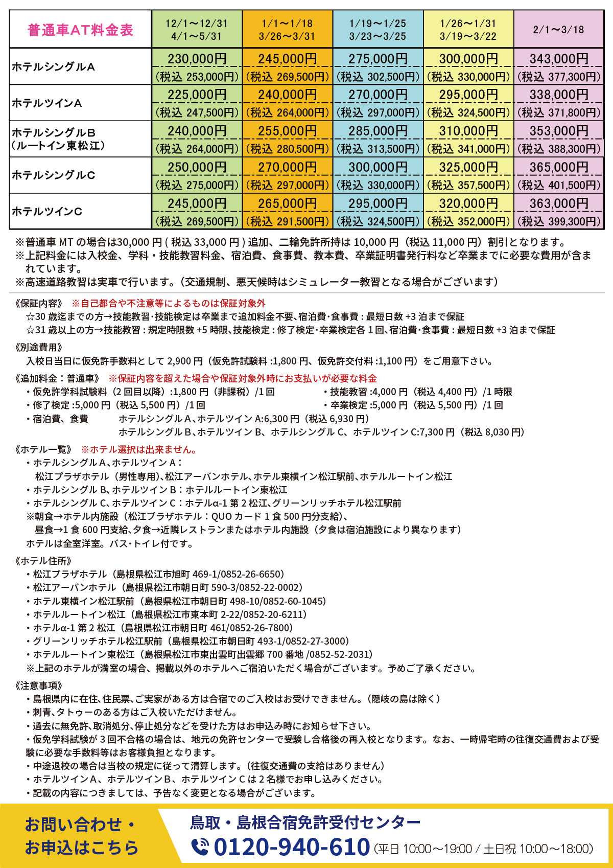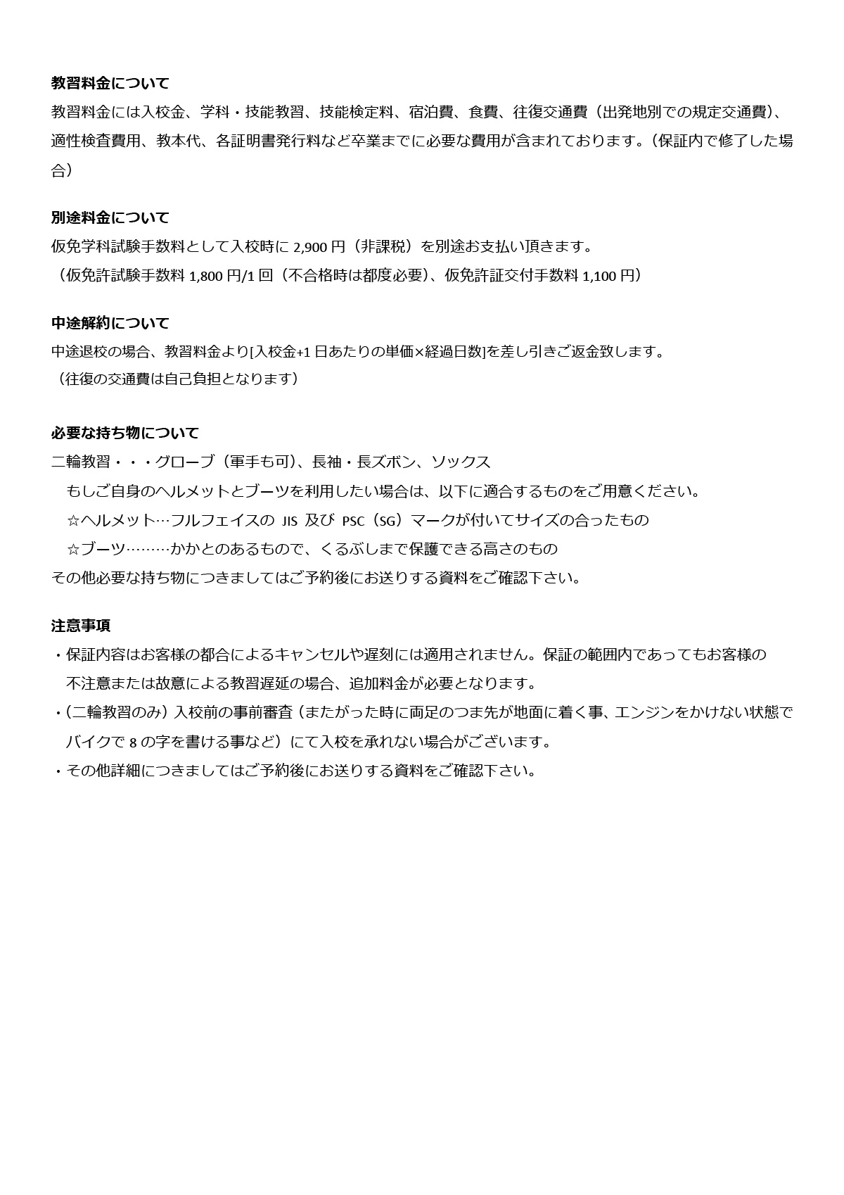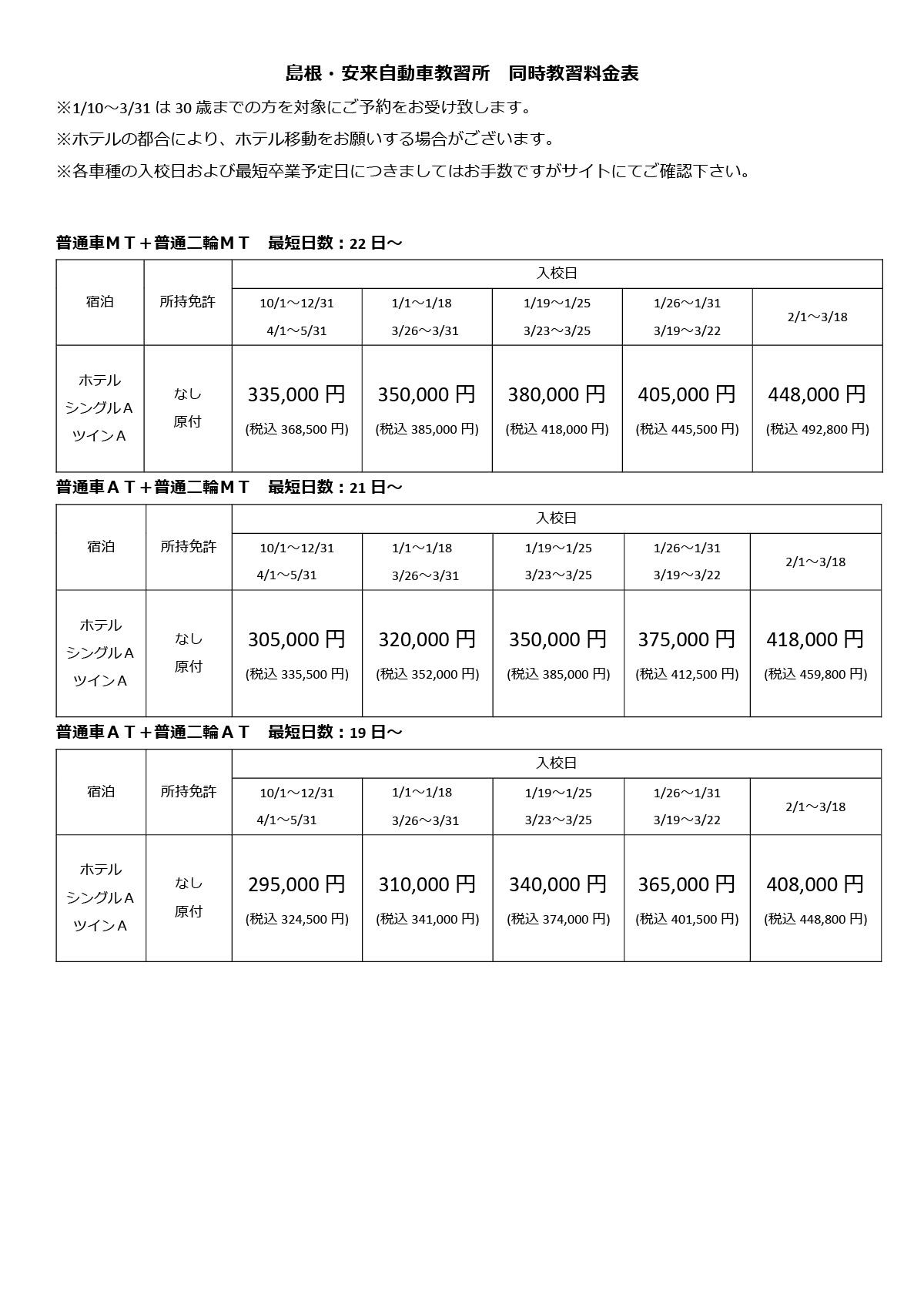 取得したい車種によって入校日と最短卒業予定日が決められています。