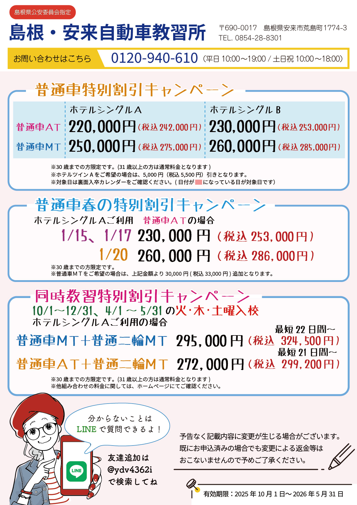 ※現在は2025年10月~2026年5月の料金表を公表しております。
